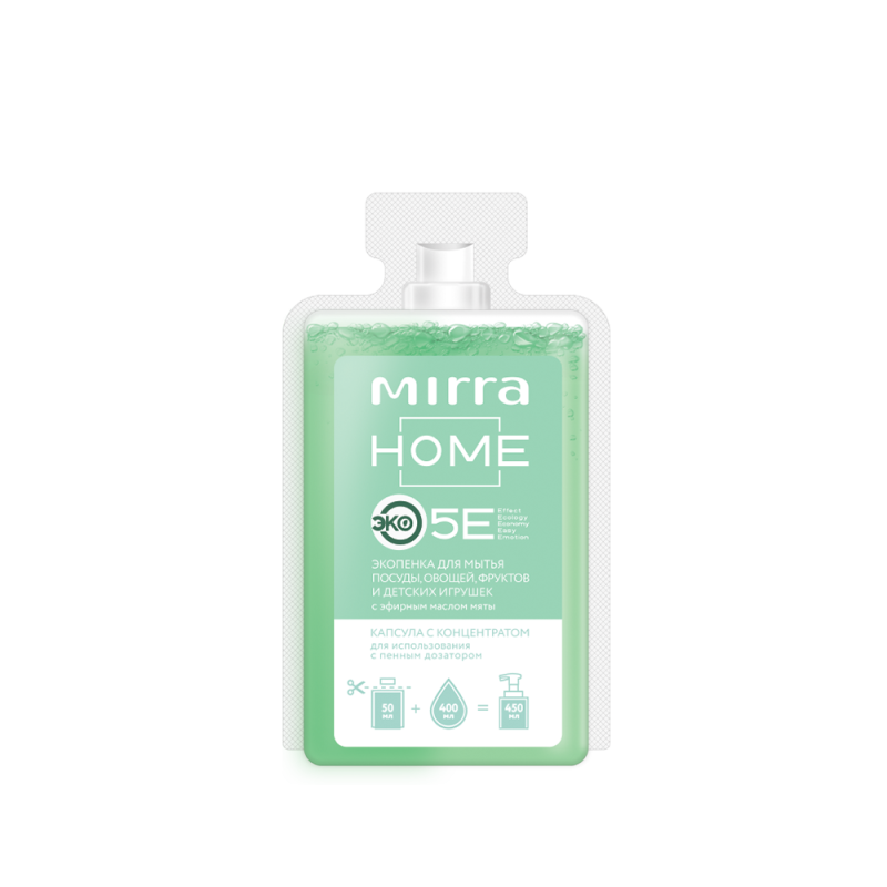 Применение: Вскройте капсулу с концентратом и перелейте содержимое в многоразовый флакон для ЭКОПЕНКИ ДЛЯ МЫТЬЯ ПОСУДЫ. Добавьте 400 мл воды, закрутите пенный дозатор и встряхните флакон с готовым раствором.