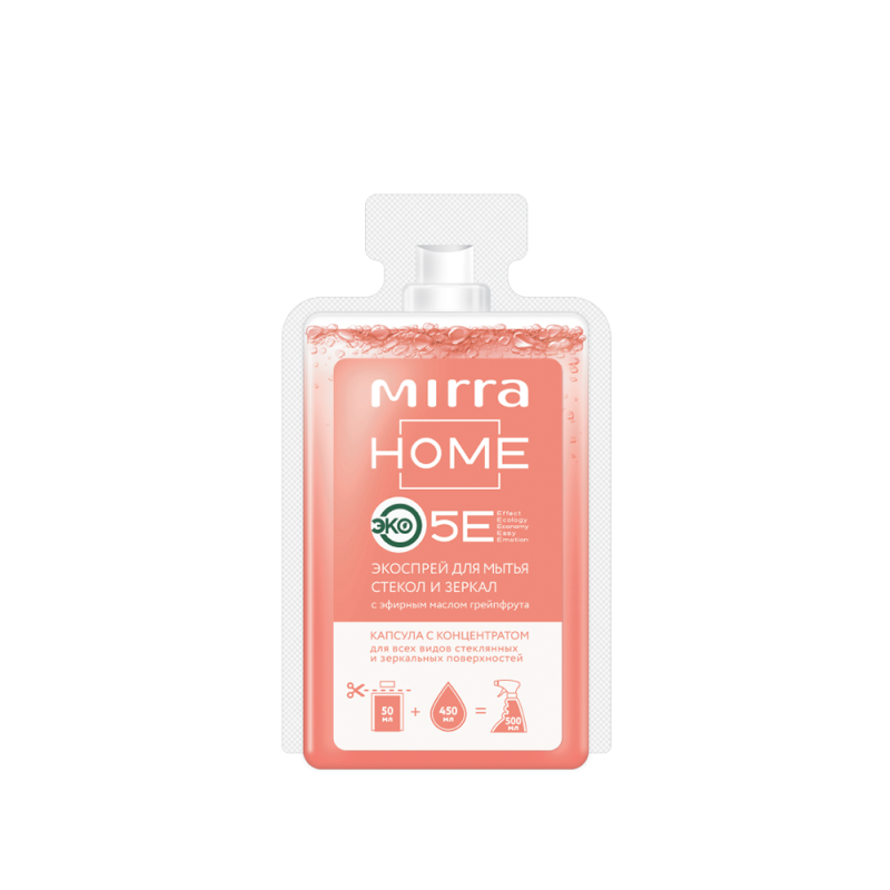 Применение: Вскройте капсулу с концентратом и перелейте содержимое в многоразовый флакон для ЭКОСПРЕЯ ДЛЯ МЫТЬЯ СТЕКОЛ И ЗЕРКАЛ. Добавьте 450 мл воды, закрутите ТРИГГЕР-РАСПЫЛИТЕЛЬ и встряхните флакон с готовым раствором.