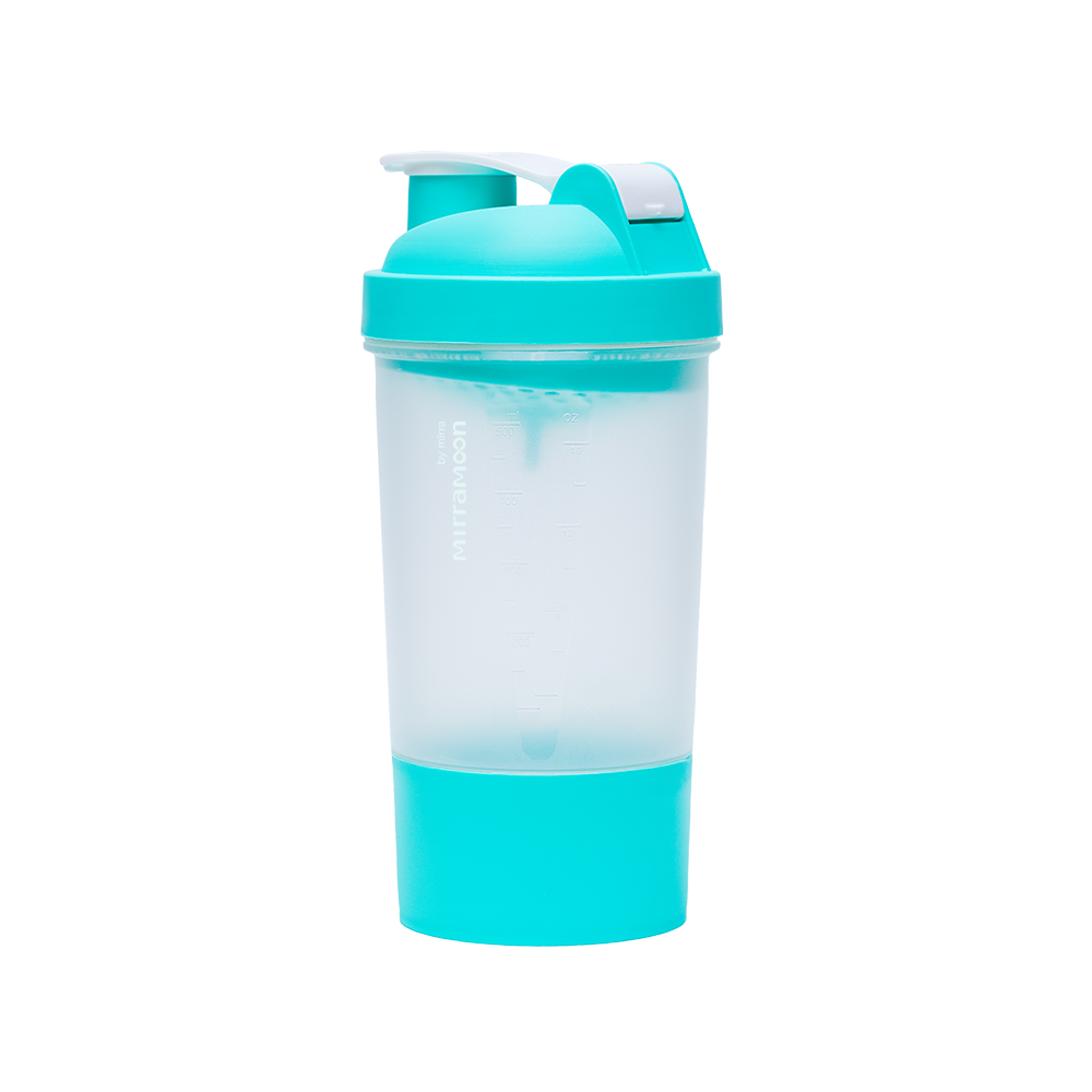 Описание: Спортивный шейкер с чашей бирюзового цвета — универсальная система! Его можно использовать как спортивный шейкер, бутылку для воды и, самое главное, как систему для хранения.